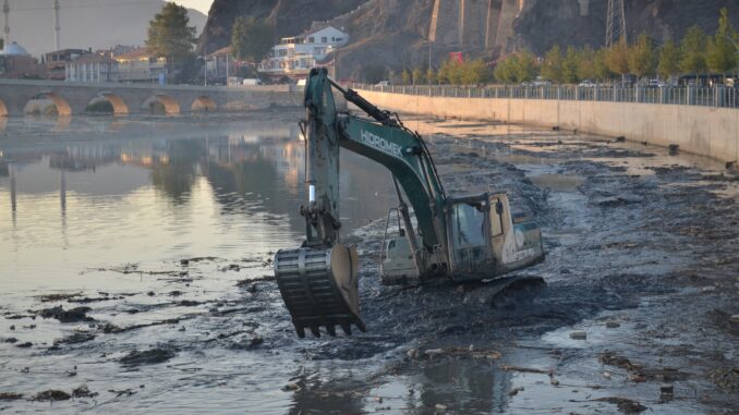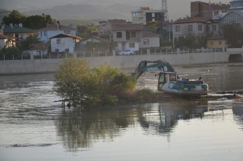 Çorum’un Osmancık ilçesinden geçen Kızılırmak nehrinde Devlet Su İşleri tarafından temizlik çalışması başlatıldı.