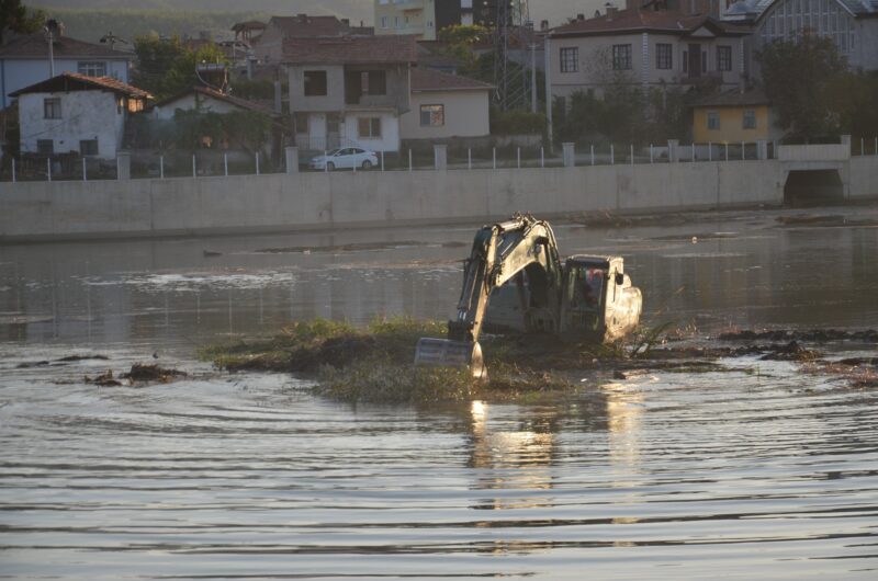 Kızılırmak’ta debinin düşmesiyle birlikte suyun durağanlaştığı bölgelerde oluşan bataklık ve sazlıkların çevreye kötü koku yayması, görüntü kirliliği oluşturması ile harekete geçen ekipler, su seviyesinin düştüğü bölgelerde otlarla kaplanan ve bataklık haline gelen kısımlarda temizlik çalışması başlattı.