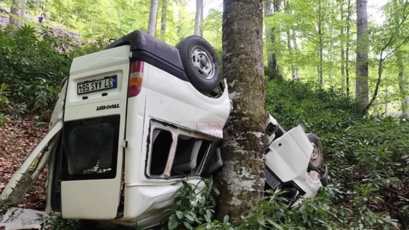 Kastamonu’nun Doğanyurt ilçesinde sabah saatlerinde yaşanan kazada, Denizgörülen Köyü’nde muhtara ait olduğu öğrenilen bir minibüs, sürücüsünün direksiyon hakimiyetini kaybetmesi sonucu kontrolden çıkarak yoldan savruldu. Araç, yol kenarındaki eğimli araziden aşağıya yuvarlandı ve ancak bir ağaca çarparak durabildi. Kazanın ardından minibüs neredeyse tanınmayacak hale gelirken, aracın hurdaya döndüğü görüldü.