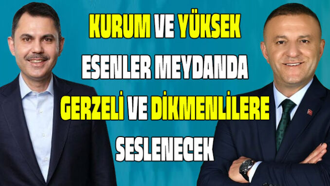 Yüksek yaptığı açıklamada, “İstanbul’da yaptığımız istişareler sonucunda İstanbul Büyükşehir Belediye Başkanı Adayımız Murat Kurum ile Esenler Meydan’da hemşerilerimizle bir araya geleceğiz. Sayın Kurum ile birlikte Gerze’yi daha iyi bir ilçe yapmak için ortak çalışarak, ilçemizi Türkiye’nin önde gelen ilçelerinden biri yapacağız” dedi.