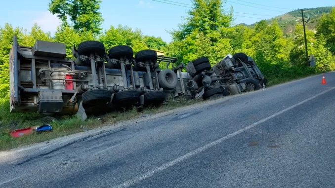 Sinop’un Türkeli ilçesinde LPG yüklü tanker yan yattı.