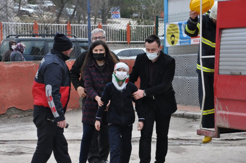 Deprem tahliye tatbikatında öğrencilerimizin tahliyeleri başarıyla sağlandı. Deprem senaryosu gereği yaralı olan öğrencimiz Boyabat Belediye Başkanlığı İlk Yardım ekibi tarafından kurtarıldı.