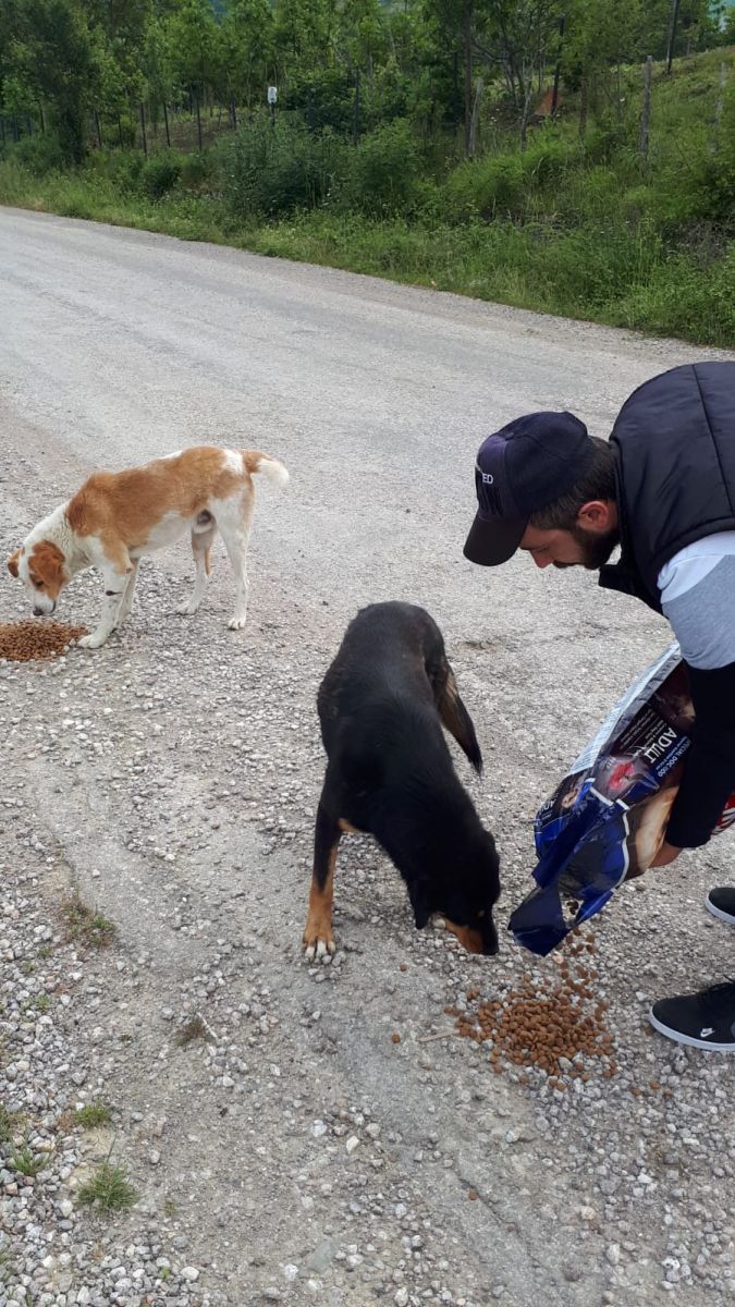 Sinop Sahipsiz Sokak Hayvanları Derneği üyeleri, söz konusu bölgeye giderek açlıktan ölmek üzere olan sokak hayvanlarına mama verdi ve ilaç desteğinde bulundu.