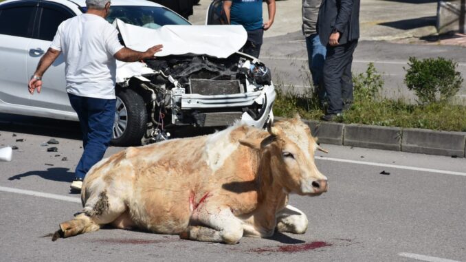 Kaza, Korucuk Mahallesi Saraç Mevkisinde, saat 15:00 sıralarında meydana geldi. Edinilen bilgiye göre, Sinop istikametinden Samsun istikametine seyir halinde olan sürücüsü öğrenilemeyen 57 ABB … plakalı araç sürücüsü Pervane yokuşuna geldiği sırada önüne aniden çıkan büyükbaş hayvana çarptı. Çarpma sonucu otomobilin ön kısmında maddi hasar meydana geldi. Büyükbaş hayvan ise ağır yaralandı. Çarpan araçta 3 kişi olduğu öğrenilirken, araç içerisindekilerin herhangi bir yaralanması olmadığı bilgisine ulaşıldı. Çevredeki vatandaşların ihbarı üzerine bölgeye polis ve sağlık ekipleri sevk edildi. Trafik polisleri kontrollü bir şekilde araç akışını sağladı. Otomobil içerisindeki vatandaşlar tedbir amaçlı ambulans ile hastaneye kaldırıldı.