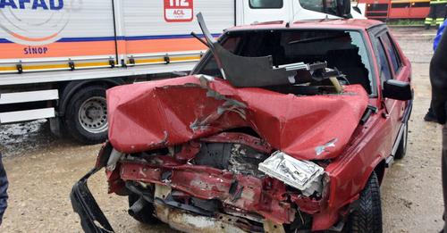 Sinop’ta kontrolsüz şekilde anayola çıkan traktör ile otomobilin kafa kafaya çarpışması sonucu ön camdan dışarı fırlayan 2 kişi yaralandı.