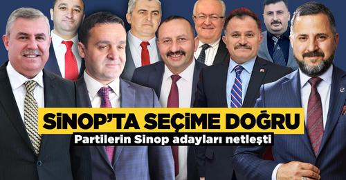 Sinop‘ta AK Parti listesine mevcut Milletvekili Dr. Nazım Maviş ile Sinoplu İş İnsanı Seyit Ali Çetin girerken, CHP’de ise liste 1. sıra Barış Karadeniz, 2. sıra ise Dr. Şevket Terkan’dan oluştu. İYİ Parti birinci sırada Yılmaz Şanlan, 2. sırada ise Baki Taşkıran listeyi paylaştı. Büyük Birlik Partisinde Taner Dinçkurt Sinop Milletvekili adayı oldu.