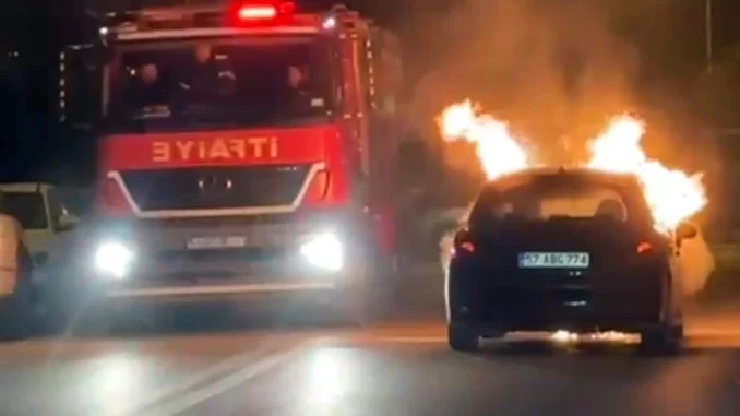 Alınan bilgiye göre, Yalı Mahallesi Şehit Bülent Yalçın Sokak’ta M.U’nun kullandığı otomobilin motor kısmında seyir halindeyken yangın çıktı.