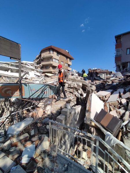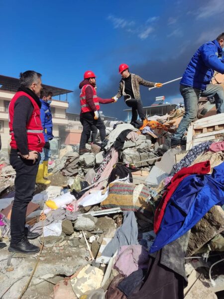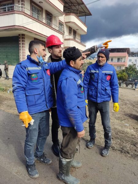 Salı sabahı günün ilk ışıkları ile Hatay Belen ilçesine gelen ekip gider gitmez arama kurtarma çalışmalarına katılarak ilk gün enkaz altından vefat eden cenazelerin çıkarılması çalışmasına katılarak cenazeleri çıkardı.