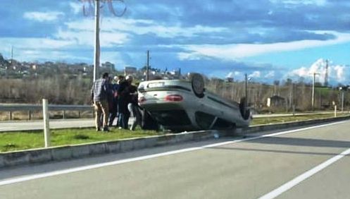 Takla atan araçta bulunan A.B.K. ve A. K.hafif şekilde yaralanarak Sinop Atatürk Devlet Hastanesine kaldırıldı.