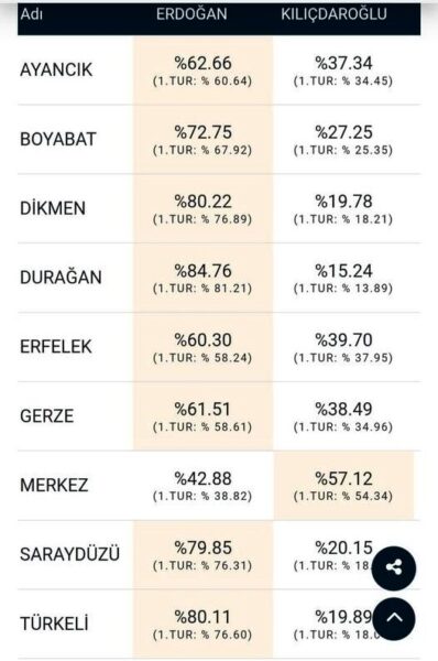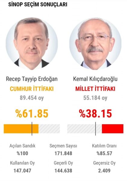 Sinop Merkez ve İlçelerinde Cumhurbaşkanlığı Seçim Sonuçları… 29 Mayıs 2023 Boyabat Gündemi GENEL 0 OKUYUCU & ZİYARETCİ KİŞİ -( 184