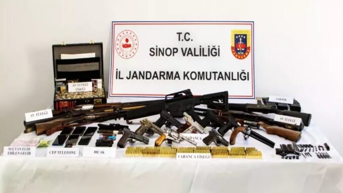 Bu kişilerden 9 tabanca, 28 şarjör, 11 av tüfeği, 1677 tabanca ve tüfek fişeği, 8 bıçak, çok sayıda silah yedek parçası ile suçtan temin edildiği değerlendirilen bir miktar para ele geçirildi.