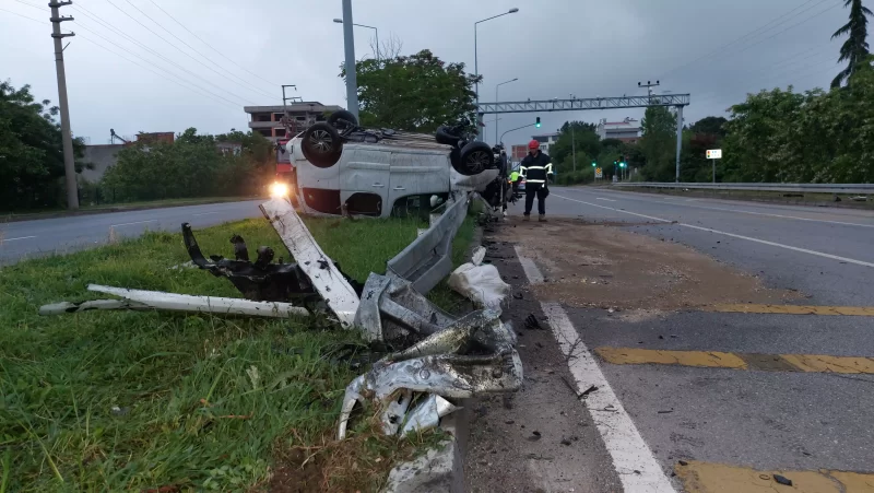 Edinilen bilgiye göre, Samsun’dan Çorum’a giden Mehmet Yasin Uçar (25) idaresindeki 19 AL 710 plakalı hafif ticari araç, direksiyon hakimiyetinin kaybedilmesi sonucu yoldan çıkarak refüjde bulunan demir bariyerin başlangıcına çarpıp takla atarak ters döndü.
