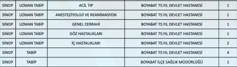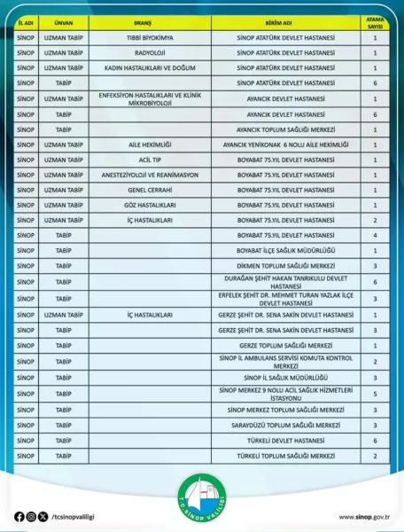 2025 Yılı 124. Dönem Devlet Hizmeti Yükümlülüğü Kurası sonuçlarına göre Sinop’ ve ilçelerine toplam 70 sağlık personeli kadrosu tahsis edildi.