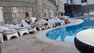 Havuz kenarlarında sabahlayan tatilciler, gece boyunca odalarına dönmedi.Tatilciler yerlerde yattı.