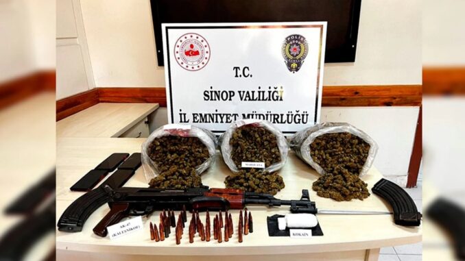 Sinop’ta durumundan şüphelenilerek durdurulan bir araç ve araç içerisinde bulunan 2 şüpheli şahsın yapılan üst aramasında piyasa değeri yaklaşık 3 Milyon TL değerinde 3 kg. 268 gram Mariuhana, 98.73 gram Kokain maddesi, 1 adet Kalaşnikof, 2 adet Şarjör ve 49 adet Fişek ele geçirildi. 2 şüpheli şahıs çıkarılmış olduğu adli makamlarca tutuklanarak ceza infaz kurumuna teslim edildi.