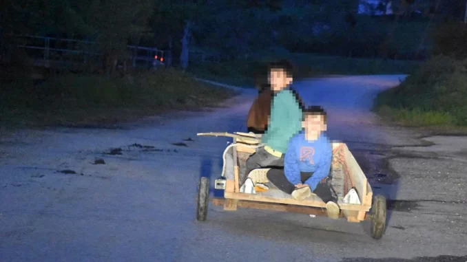 Sinop’un Erfelek ilçesi Akçaçam köyünde 2 erkek çocuğun, trafiğin işlek olduğu yolda derme çatma eşek arabasıyla yaptıkları tehlikeli yolculuk kameralara yansıdı. Görüntülerde, çocukların eşek arabasının arkasında uyuduğu ve uyandığı gözlemlendi. Daha sonra uyanan çocuklardan biri eşeğe sopayla vurarak eşek arabasını hızlandırmak istediği görülüyor.