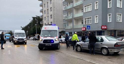 Ş.E. (30) idaresindeki 57 DD 623 plakalı otomobil, Gelincik Mahallesi Fatih Caddesi’nde, E.Ö’nün (33) kullandığı 57 ABF 882 plakalı otomobille çarpıştı.