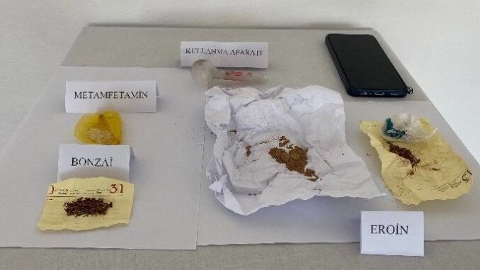 Yapılan aramalarda 3,71 gram eroin, 2,02 gram metamfetamin, 0,50 gram bonzai ve 1 adet madde kullanma aparatı bulundu. Olayla ilgili 1 şüpheli şahıs hakkında adli işlem başlatıldığı bildirildi.