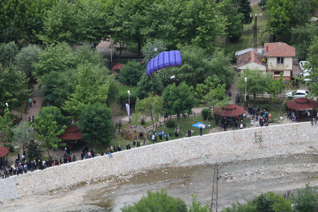 Boyabat Belediyesince düzenlenen ‘ 40 Kızlar 40 Atlama’ etkinliklerinin Wingsuit ( Yarasa Adam) Microlighıt dan atlayarak Boyabat kalesinin üstünden uçarak geçti.