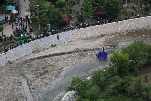 Gerçekleşen bu atlayış Boyabat tarihinde bir ilk özelliği taşıyor. Tarihi özelliği ile dikkat çeken Boyabat kalesinden, ilk defa uçarak geçen yarasa adam izleyicilerden büyük alkış topladı.