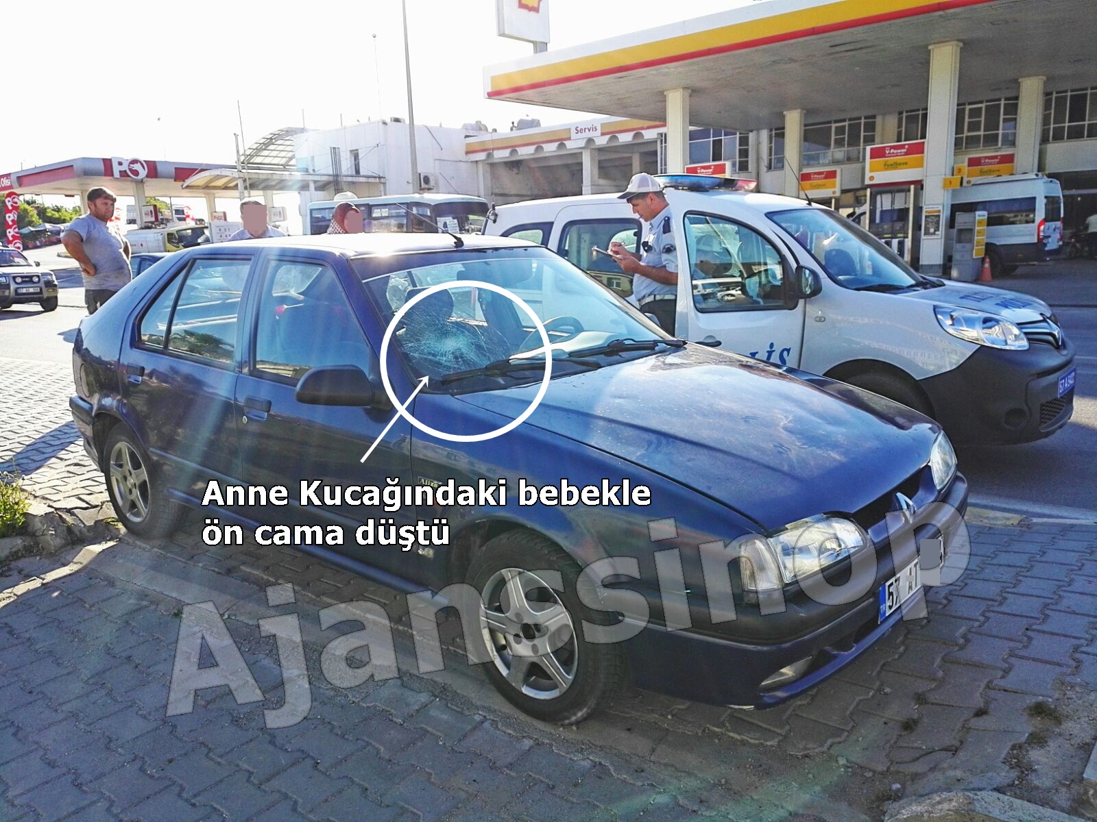 Durumu erken farkeden anne, bebeğini kucağına aldı ve aracın ön camına çarptı.