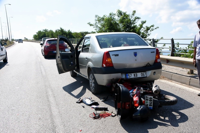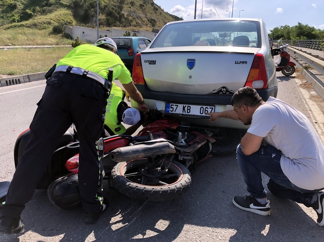 Sinop’ta meydana gelen kazada motosiklet otomobilin altına sıkışarak yaralandı.