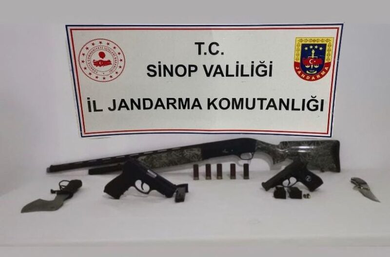 Sinop İl Jandarma Komutanlığınca 21.12.2022 günü Sinop ili Türkeli İlçesinde umuma açık istirahat ve eğlence yerine yapılan operasyonda; (2) adet tabanca, (1) adet ruhsatsız av tüfeği, (2) adet muhtelif kesici alet, (10) adet tabanca fişeği ve (5) adet av tüfeği fişeği ele geçirilmiş olup, olayla ilgili (4) şüpheli şahıs yakalanarak adli işlemlere başlanılmıştır.