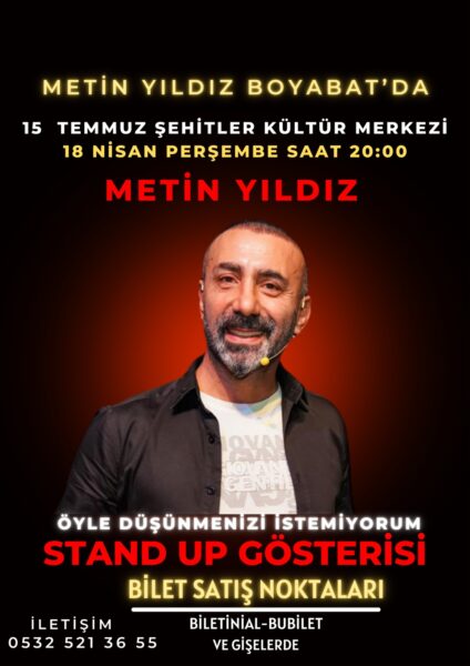 Çok Güzel Hareketler 1’in tanınan yüzü Ünlü Oyuncu Metin Yıldız’ın Stand up gösterisi Turhal , Vezir Köprü ve Boyabat İlçelerinde Hayranlarıyla Buluşacak!