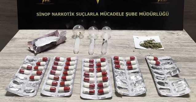 Şüphelilerin adreslerindeki aramalarda, 5,90 gram metamfetamin, 43 uyuşturucu hap ve 1,50 gram esrar ele geçirildi.