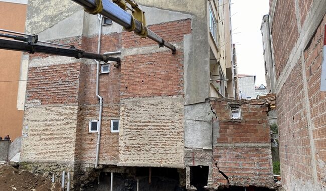 Çalışmalar, sabah saatlerinde de devam etti. Vinç yardımıyla binaya destek verilirken, geçici olarak temel sağlamlaştırma çalışmaları yürütüleceği ve bina sakinlerinin kısa süreliğine binaya girerek değerli eşyalarını almasının sağlanacağı öğrenildi. Ardından bina kontrollü olarak yıkılacak.