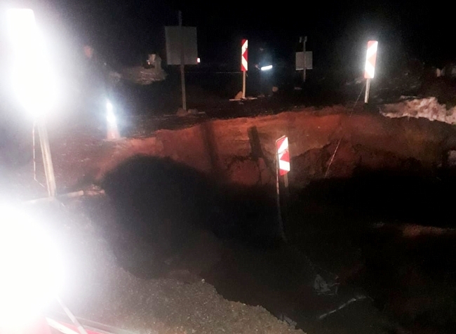 Türkeli ile Ayancık ilçelerini birbirine bağlayan karayolunun Büyükdüz mevkisinde yol çöktü. O sırada geçmekte olan ambulans ise uçuruma yuvarlanmaktan son anda kurtuldu.