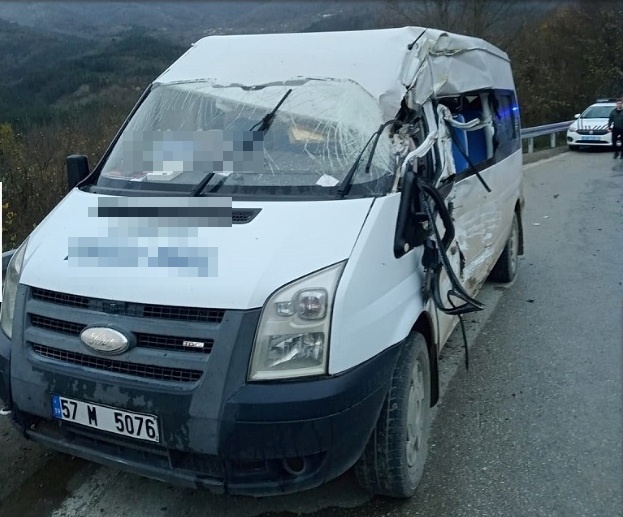 Alınan bilgiye göre, Türkeli ilçesinden Ayancık istikametine seyir halinde olan Celil Ü. (53) idaresindeki 57 M 5076 plakalı yolcu minibüsü, karşı yönden gelen Berat Ö. (22) kontrolündeki 57 EA 464 plakalı kamyon ile kafa kafaya çarpıştı.