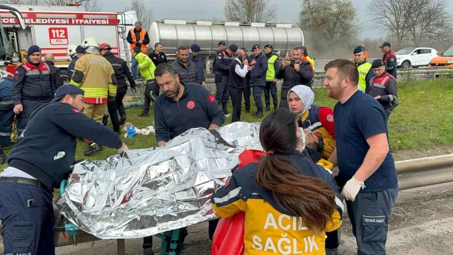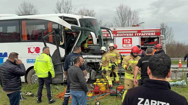 TEM Otoyolu Düzce geçişinde şehirlerarası yolcu otobüsünün tıra arkadan çarpması neticesinde meydana gelen kaza sonrasında araçlarda sıkışan yaralılar sağlık ve itfaiye ekiplerinin müdahalesiyle çıkarıldı.