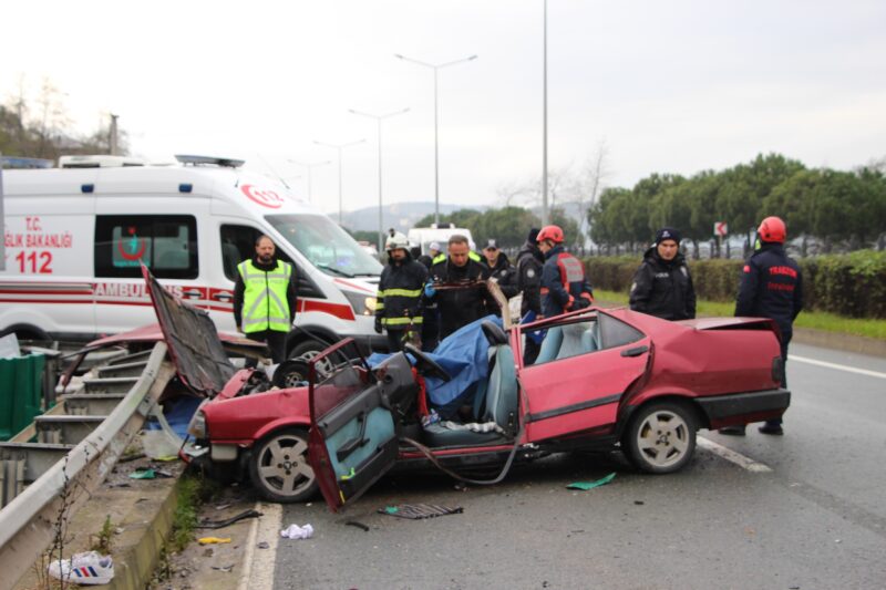 Edinilen bilgiye göre, Karadeniz Sahil Yolu’nda Trabzon-Rize istikametinde gitmekte olan A. E. yönetimindeki 55 AAB… plakalı Tofaş marka otomobil, henüz bilinmeyen nedenle direksiyon hakimiyetini kaybetmesi sonucu Sürmene ilçe merkezi girişinde bulunan yol ayrımındaki bariyerlere hızla çarptı. Çarpmanın etkisiyle otomobil ikiye bölünürken, kazayı gören çevredeki vatandaşlar durumu 112 Acil Çağrı Merkezi’ne bildirdi.